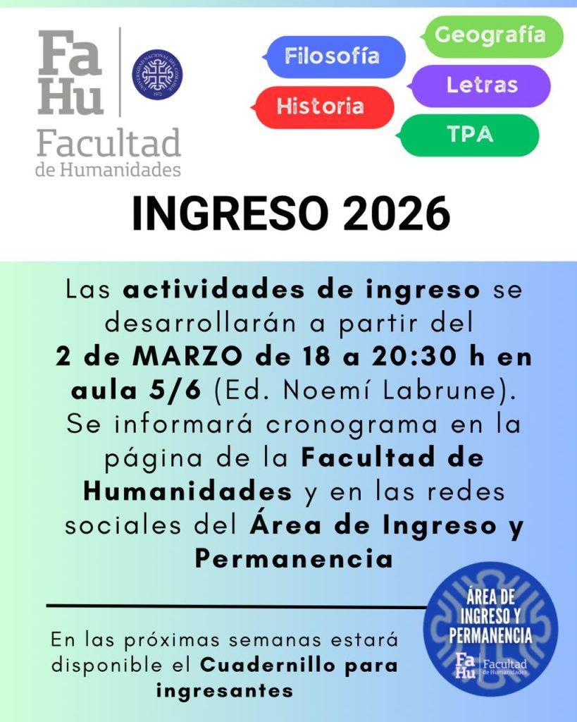 El cronograma será informado en la página oficial de la Facultad de Humanidades y en las redes sociales del Área de Ingreso y Permanencia.