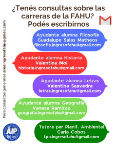 Para consultas sobre documentación escribí a departamento.alumnos@fahu.uncoma.edu.ar